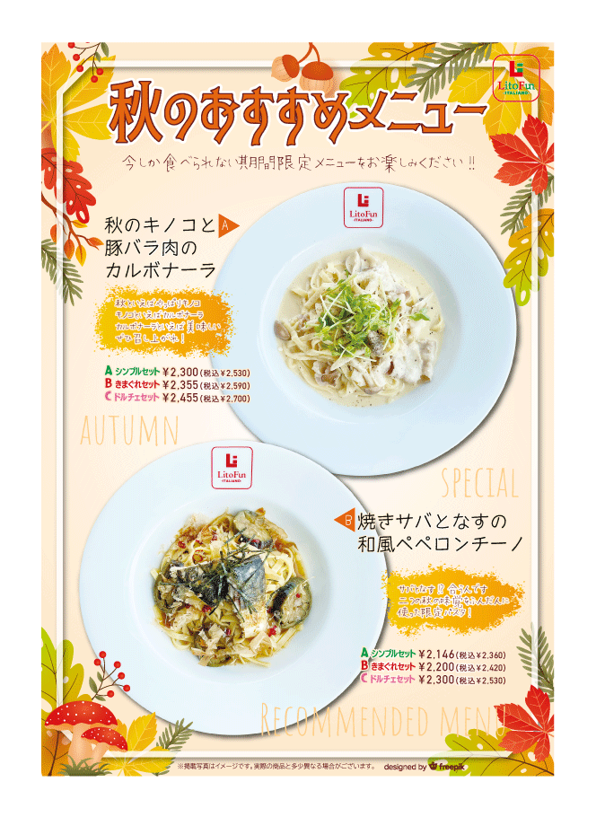 秋のおすすめパスタ♪ 2025 1/15 倉敷店 2024-09-182025-01-15 倉敷店 よかったらシェアしてね! URLをコピーしました! URLをコピーしました! 🍁秋のおすすめピッツァ🍁 岡山店の✵クリスマスパーティー✵ 関連記事 倉敷店🎄Christmas menu🎄 2024-11-20 夏のシュラスコパーティー🍖 2024-07-16